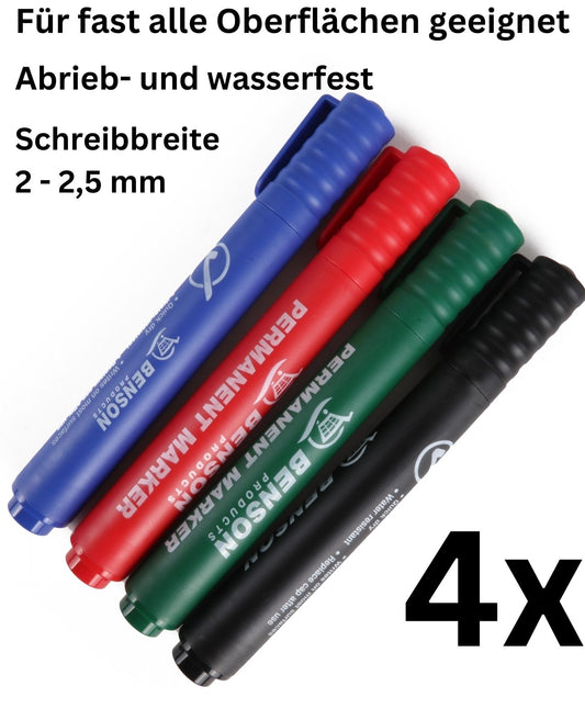 Permanent Marker Marker bunt Wasserfest Rundspitze Filzstifte Stift 4 Stück