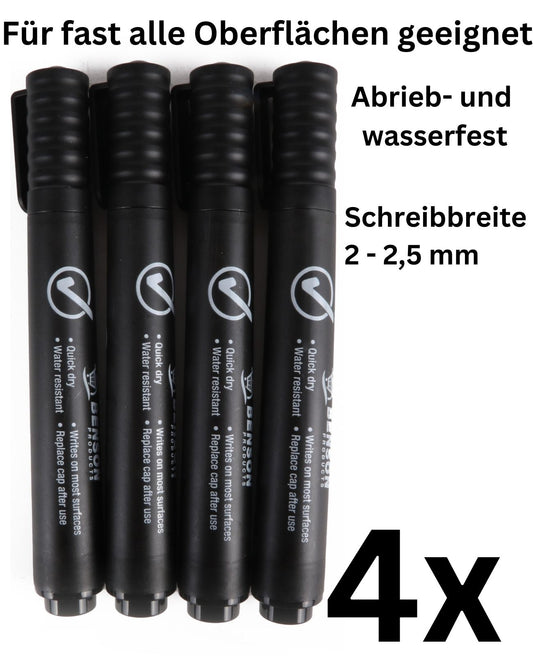 Permanentmarker Marker schwarz Wasserfest Rundspitze Filzstifte Stift 4 Stück