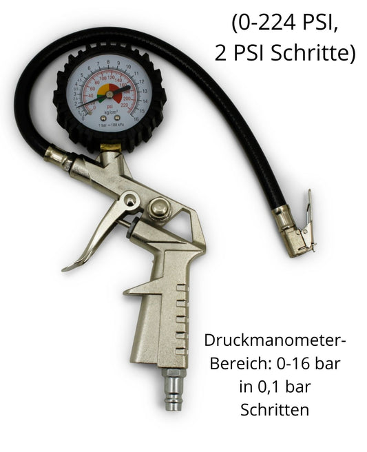 Reifendruckpistole Druckluftpistole Luftdruckprüfer Reifen Manometer 0-16 bar
