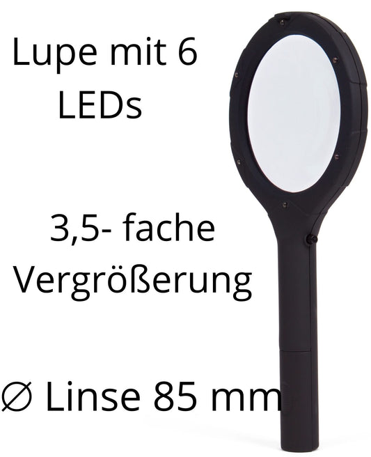 Lupe Leselupe mit 6 LED Vergrößerungsglas Taschenlupe mit Licht 3,5-fache Vergr.