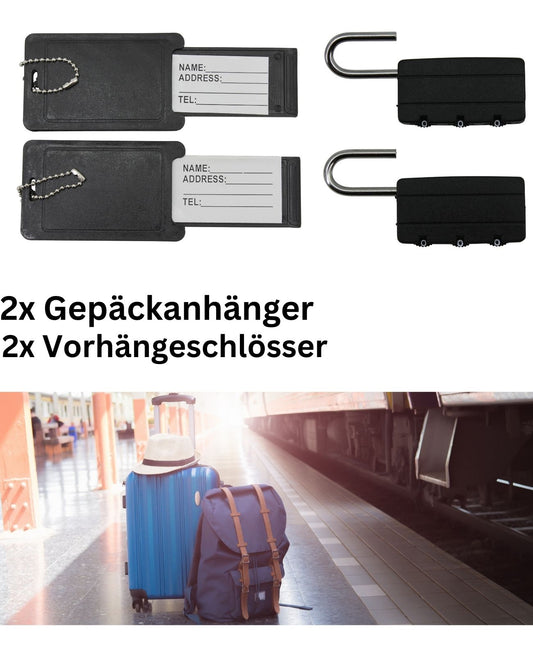 Gepäckanhänger Reiseschloss Set 4tlg Gepäckschloss + Kofferschild