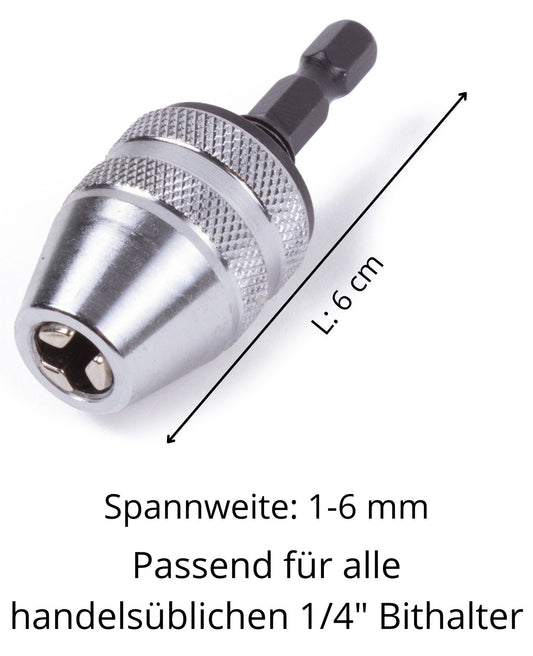 Bit Bohrkopf Schnellspannbohrfutter 1-6 mm 1/4" Bohrfutter für Bohrer Kopf 1/4"