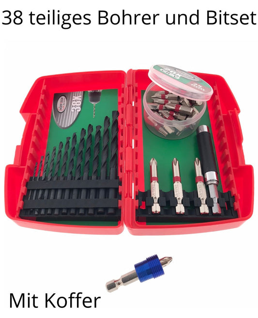 Profi Bohrer & Bit-Set 38-tlg inkl Magnet-Adapter Koffer Bitaufnahme Halterung