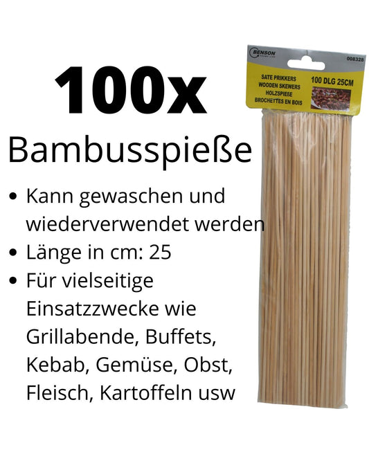Holzspieße Schaschlikspieße Bambusspieße Grill BBQ Barbecue Fleisch Spieße 100x
