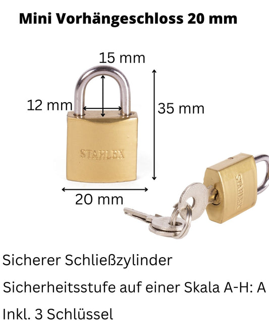 Mini Vorhängeschloss Koffer Spind Schloss Bügelschloss Hangschloss 20mm