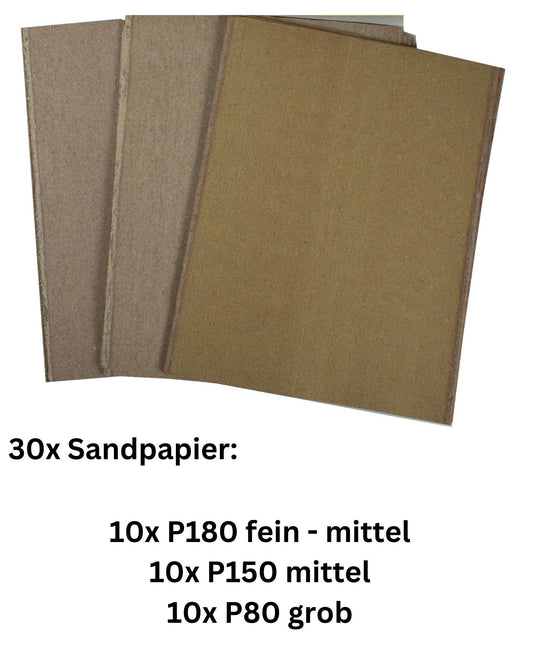 Schleifpapier Schmirgelpapier Sandpapier P180, P150, P80 / 30 Blatt 3 Größen