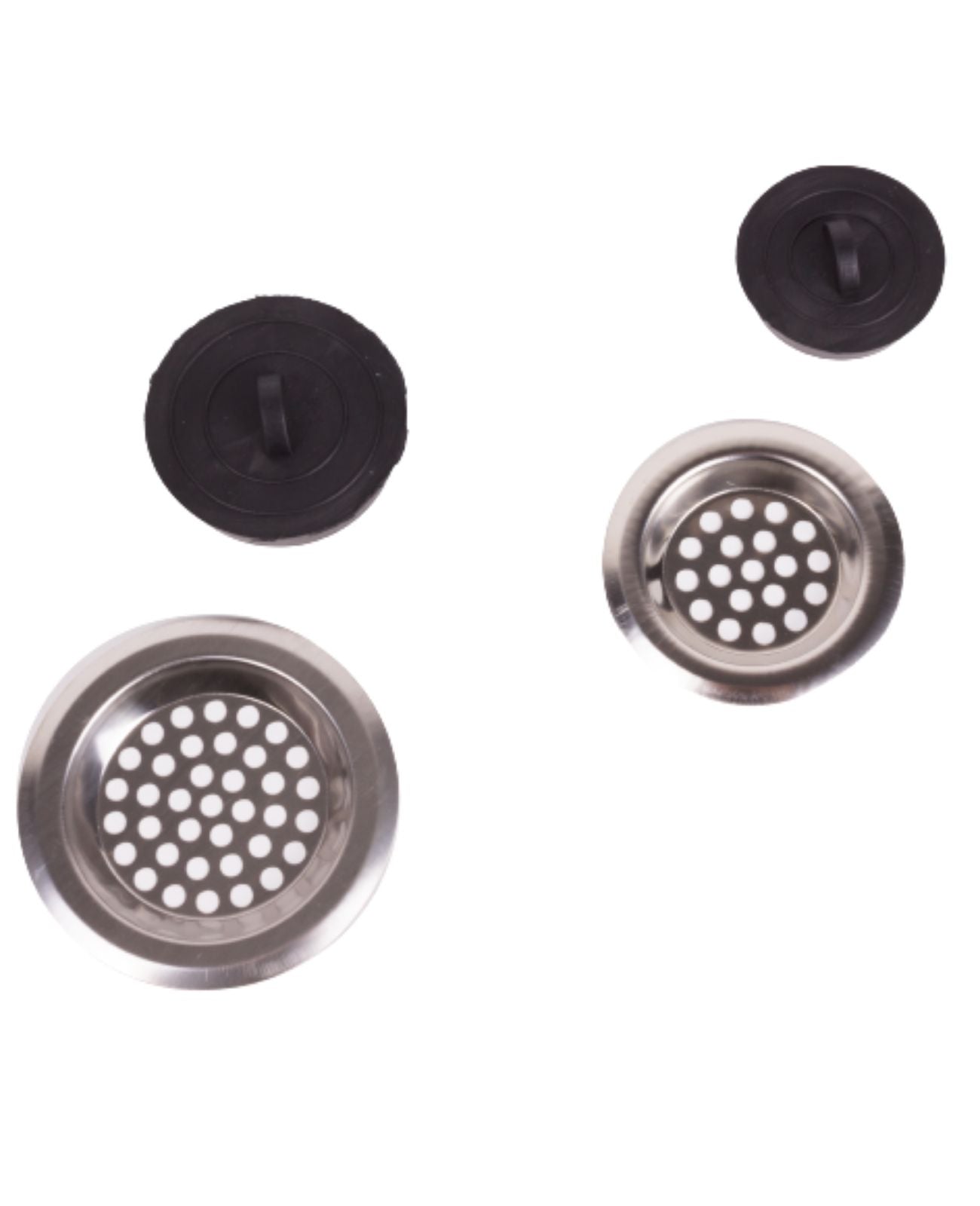 Zwei Stöpsel in den Größen 4,2 cm und 5,4 cm ergänzen das Set und ermöglichen das einfache Verschließen des Abflusses.