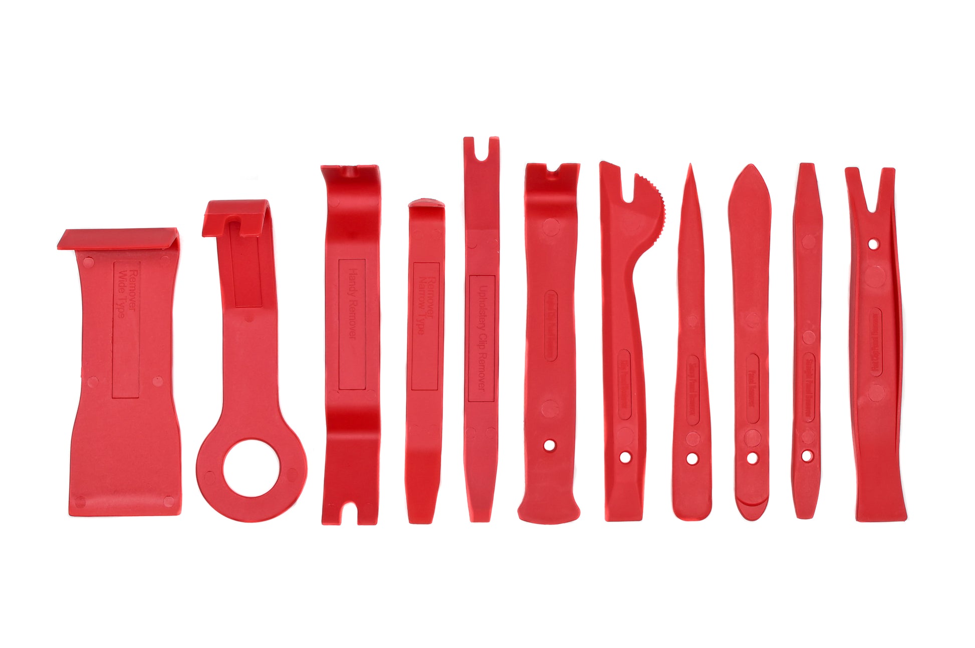 Dieses 11-teilige Werkzeugset ist perfekt geeignet zum sicheren Entfernen von Zierleisten, Türverkleidungen und Armaturenbrettern in deinem Fahrzeug – ohne Kratzer oder Beschädigungen.