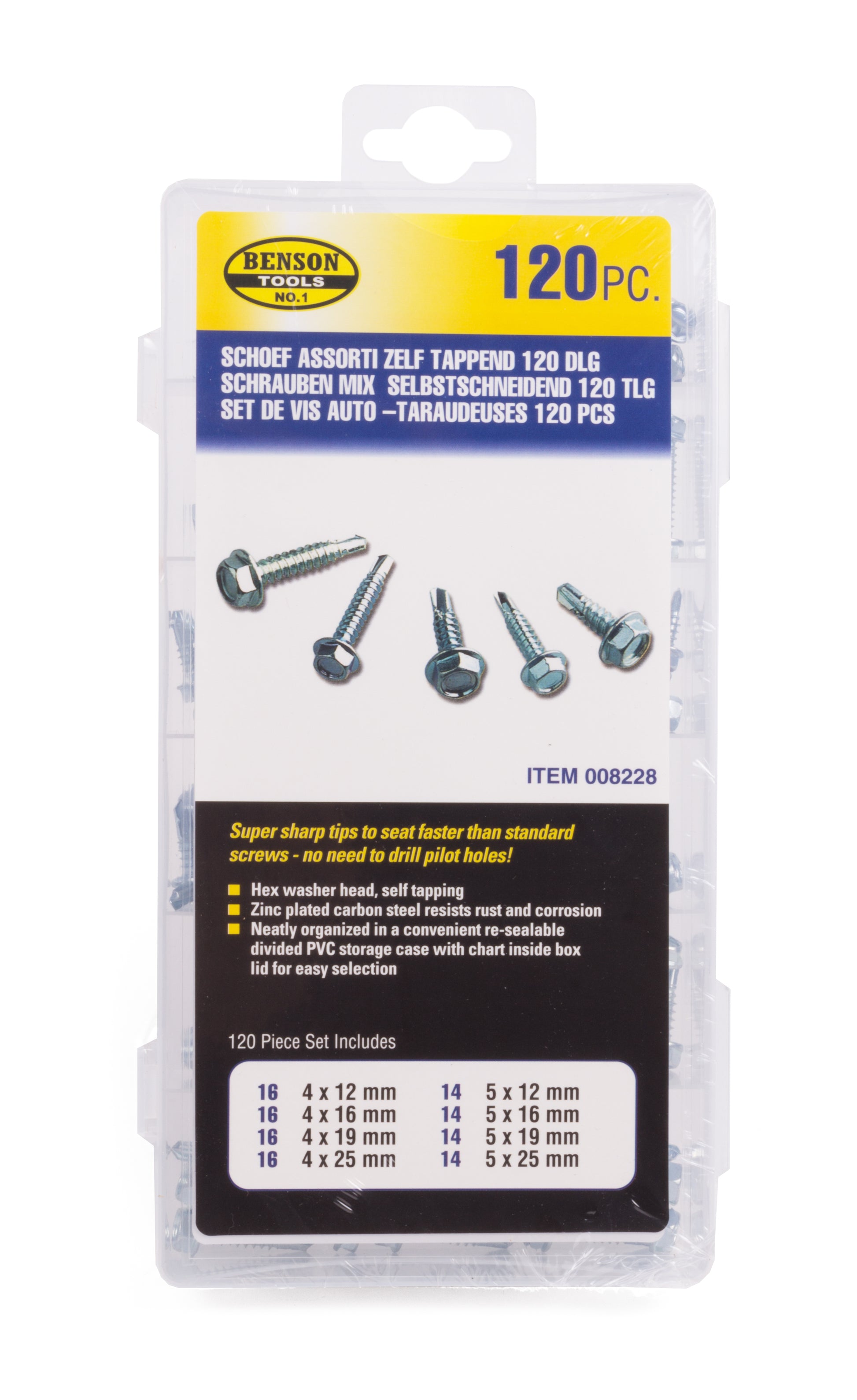 Dieses Schrauben-Set ist die ideale Lösung für alle, die regelmäßig mit Holz oder Metall arbeiten. Es enthält 120 gewindeschneidende Schrauben in verschiedenen Größen – perfekt für Heimwerker, Bastler und Handwerker.