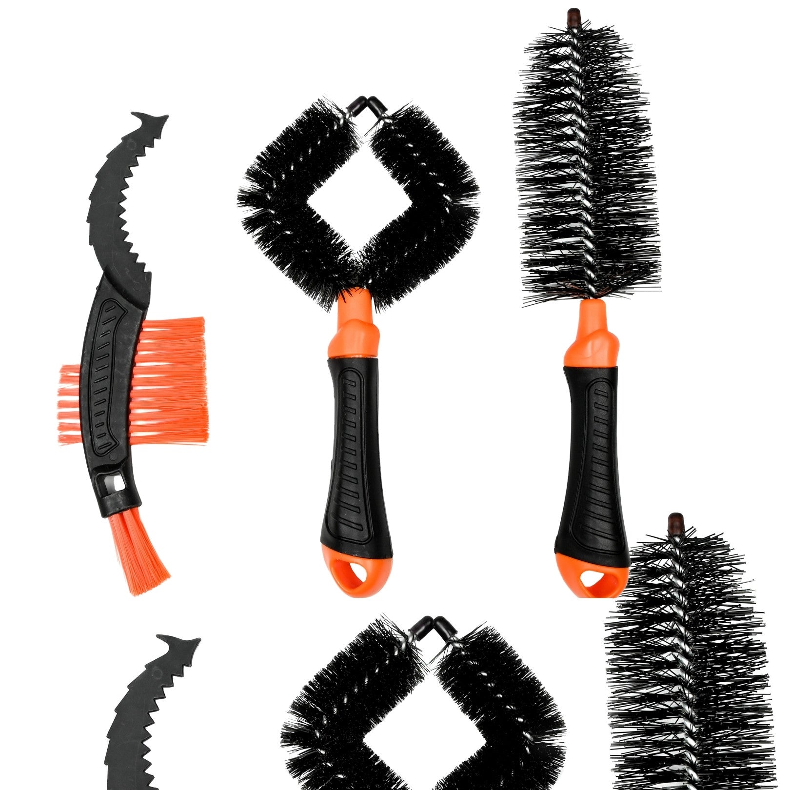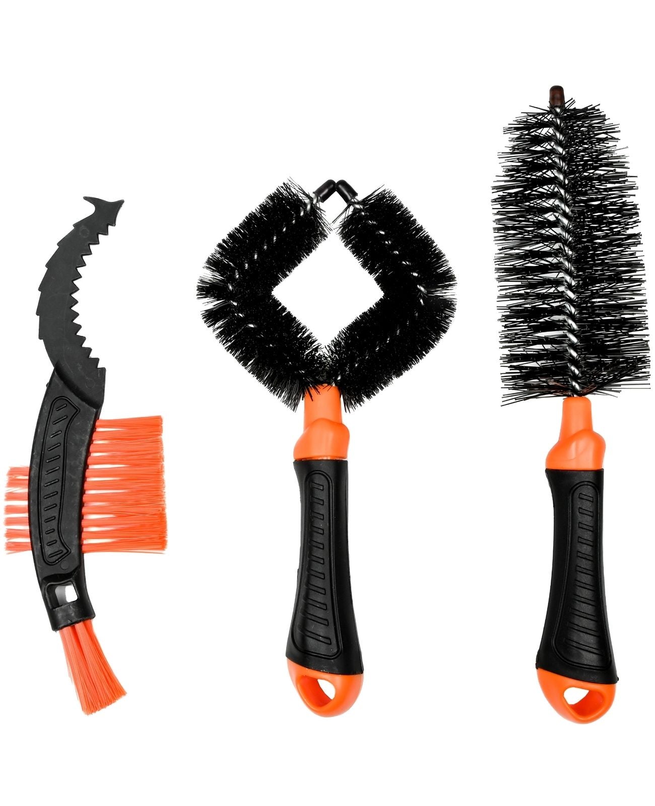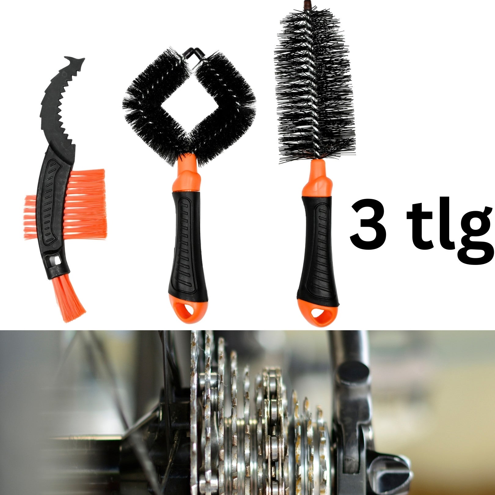 3-teiliges Fahrrad-Bürstenset – Reifenbürste, Kettenbürste und Fahrradputzbürste in einem