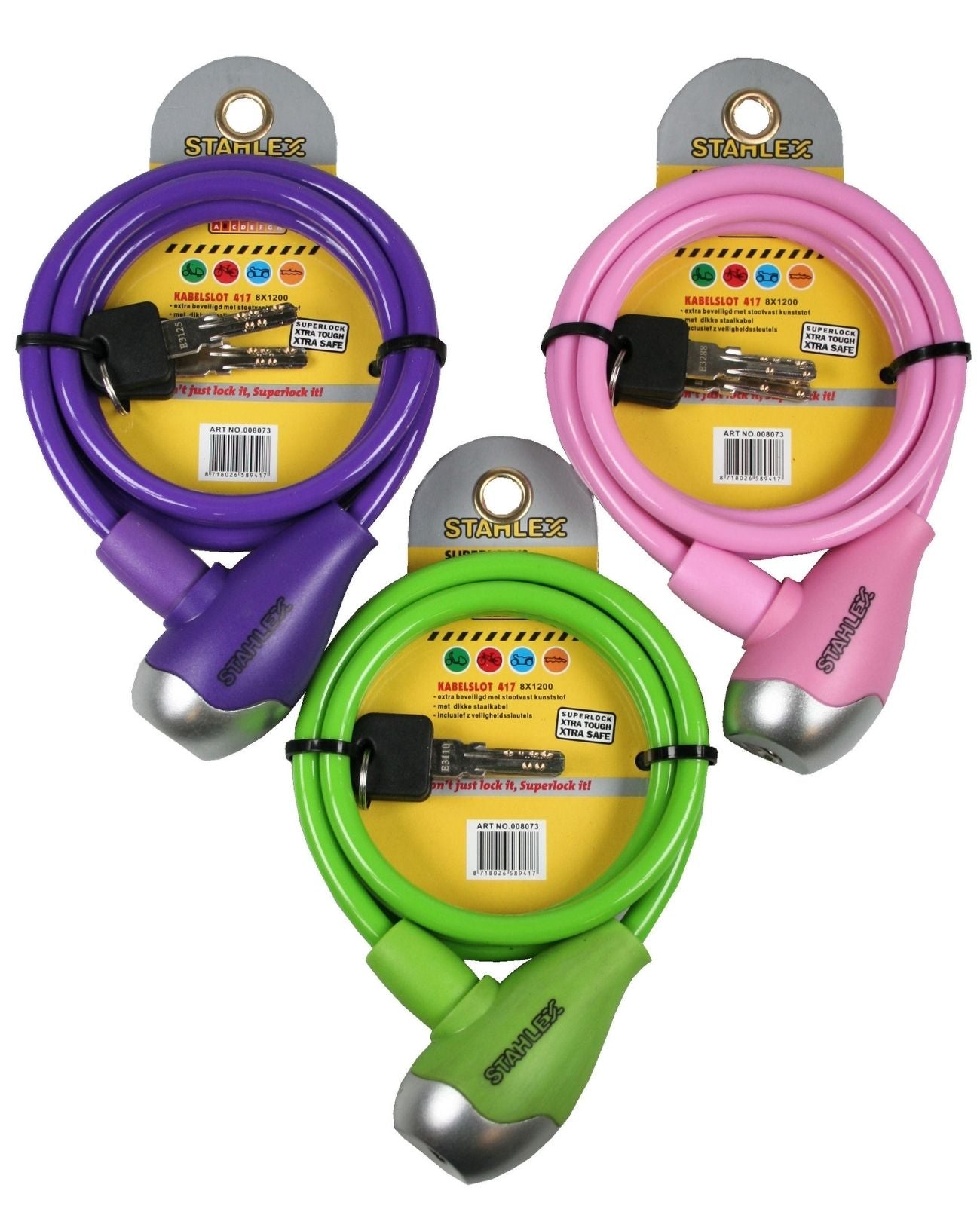 Der innenliegende Kabelkern hat einen Durchmesser von 8 mm und bietet zuverlässigen Schutz im Alltag. Ideal für mittlere Sicherheitsansprüche, z. B. beim Abstellen in belebten Bereichen.