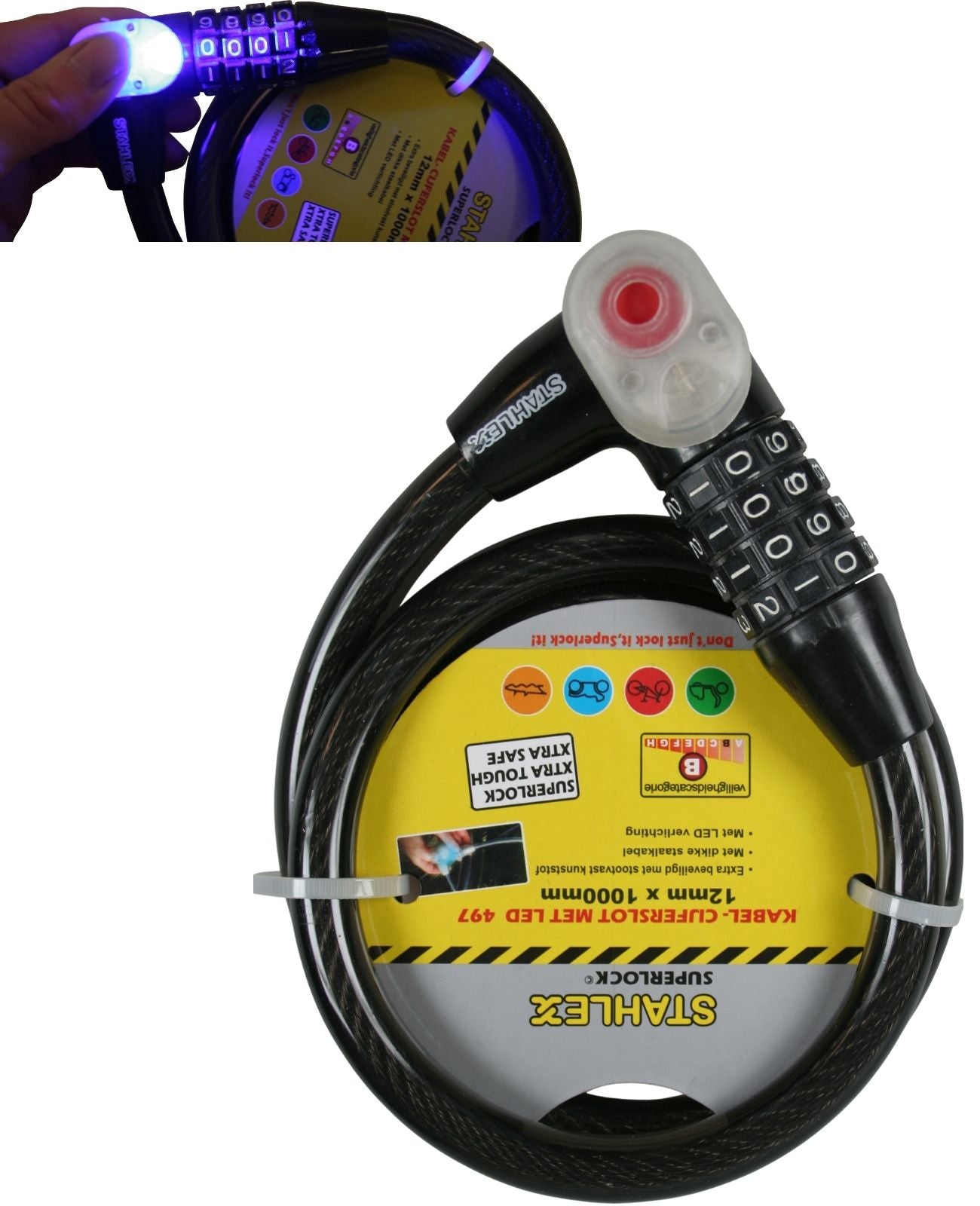 Produktbeschreibung: Fahrradschloss Kabelschloss Zahlenschloß Kombinationschloss mit LED 12 X 1000 mm