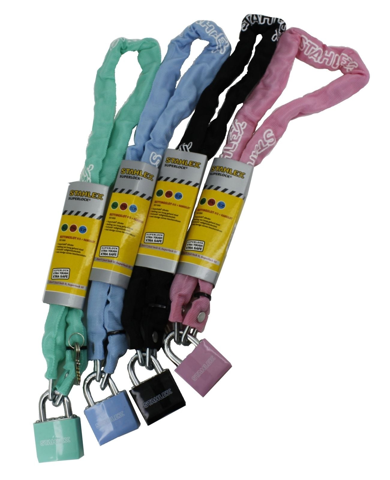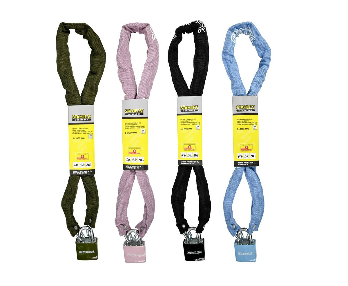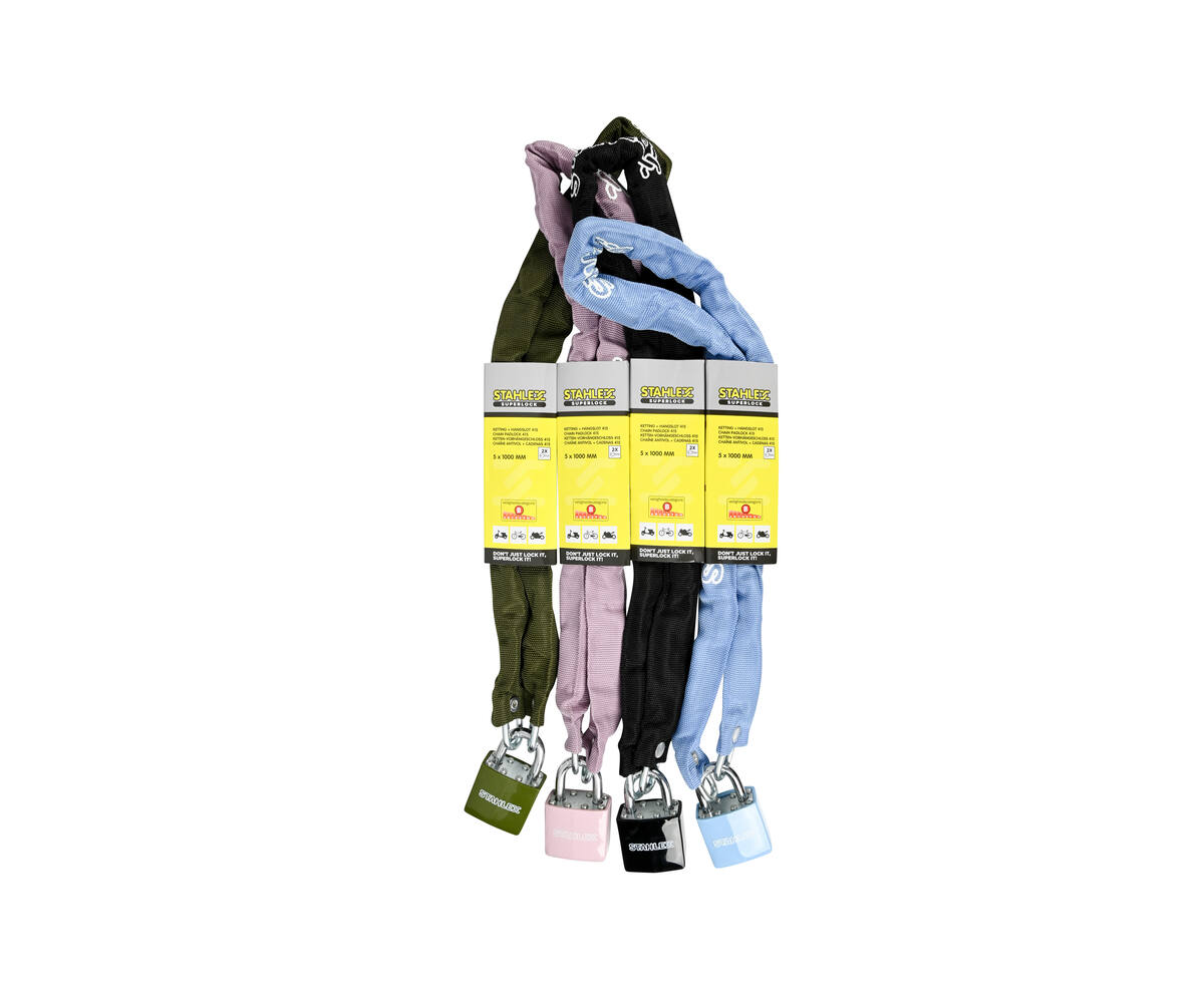 Die 5 mm starke Kette ist aus gehärtetem Stahl gefertigt und widersteht gängigen Aufbruchversuchen. Zwei mitgelieferte Schlüssel ermöglichen eine einfache und sichere Handhabung.