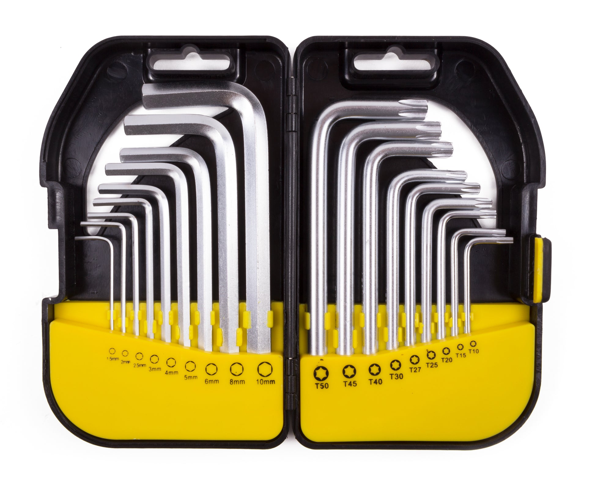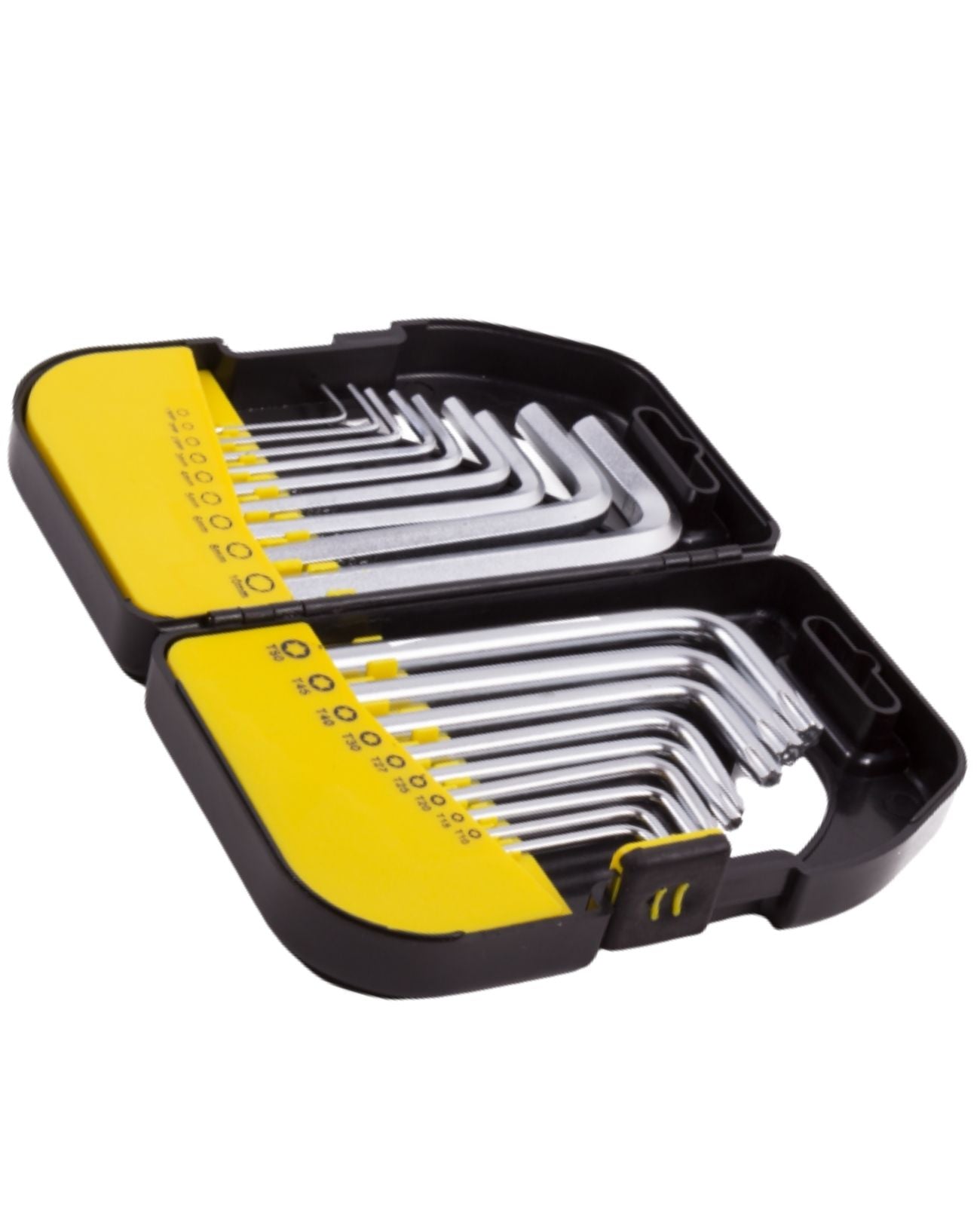 Produktbeschreibung: Innensechskant Set + Innenstern Winkelschraubendreher 18tlg.