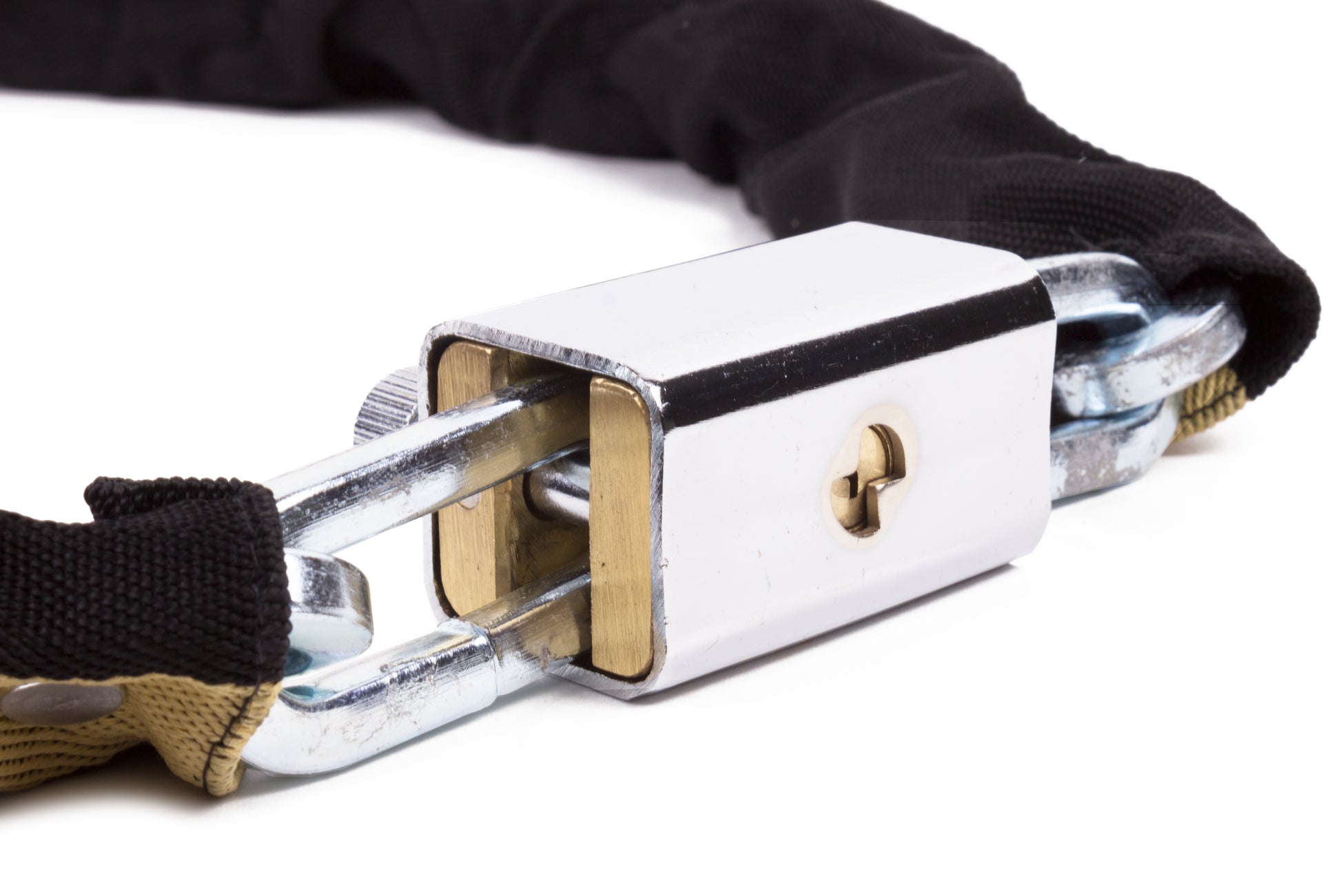 Die Kette aus schlagfestem Stahl und das Schloss aus robustem Messing garantieren eine hohe Widerstandskraft. Im Lieferumfang sind 2 Schlüssel enthalten.