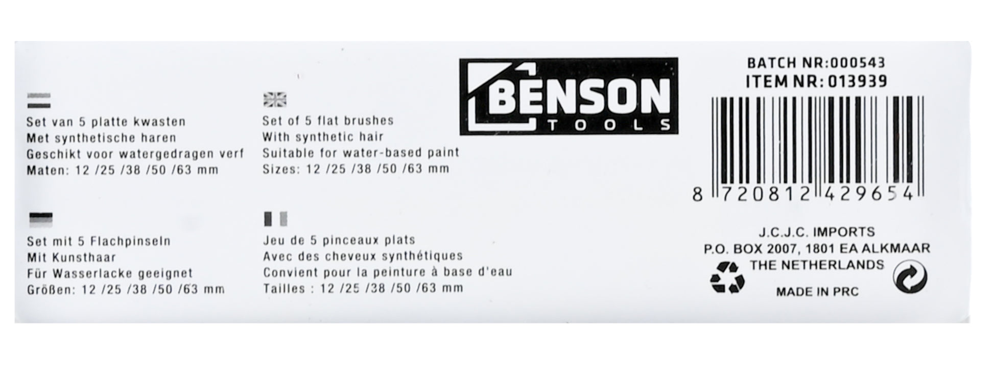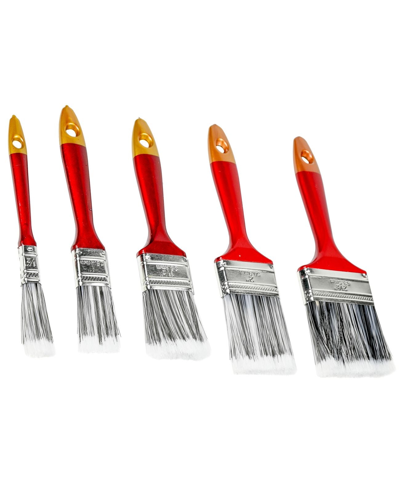 Das Set enthält fünf Pinsel in den Größen 12, 25, 38, 50 und 63 mm. So hast Du für jede Aufgabe das passende Werkzeug zur Hand – vom präzisen Kantenstrich bis zur großflächigen Anwendung. Dank der Aufhängeöse lassen sich die Pinsel nach dem Gebrauch einfach und platzsparend aufbewahren.