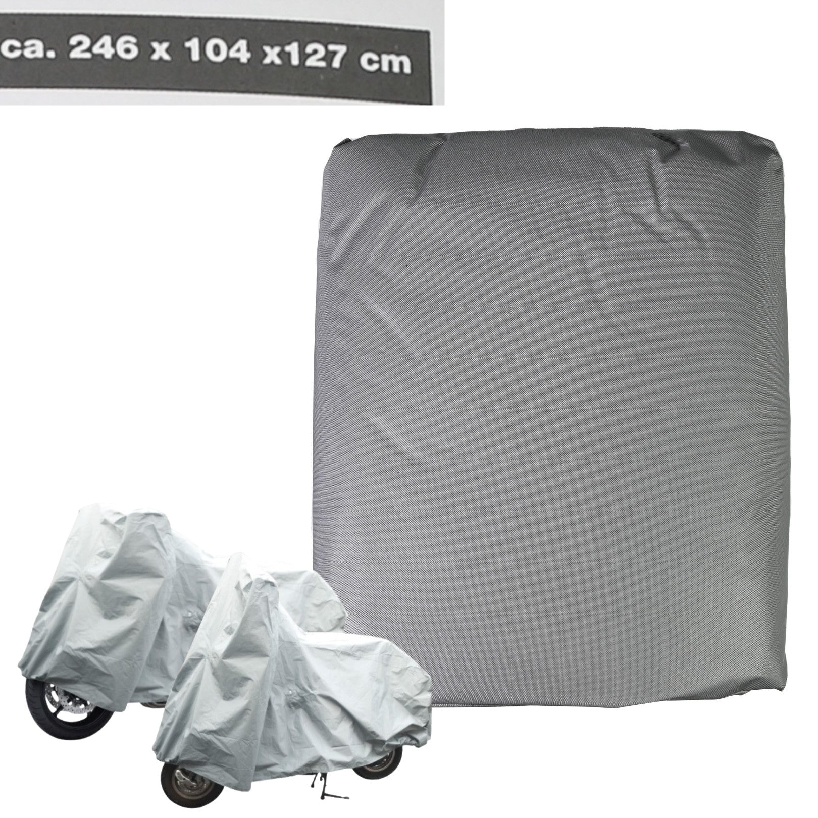 Mit den Maßen von ca. 246 x 104 x 127 cm passt die Abdeckung auf viele Fahrzeugtypen und bietet umfassenden Schutz, egal ob draußen geparkt oder in der Garage. Das silbergraue Design wirkt unauffällig und modern.
