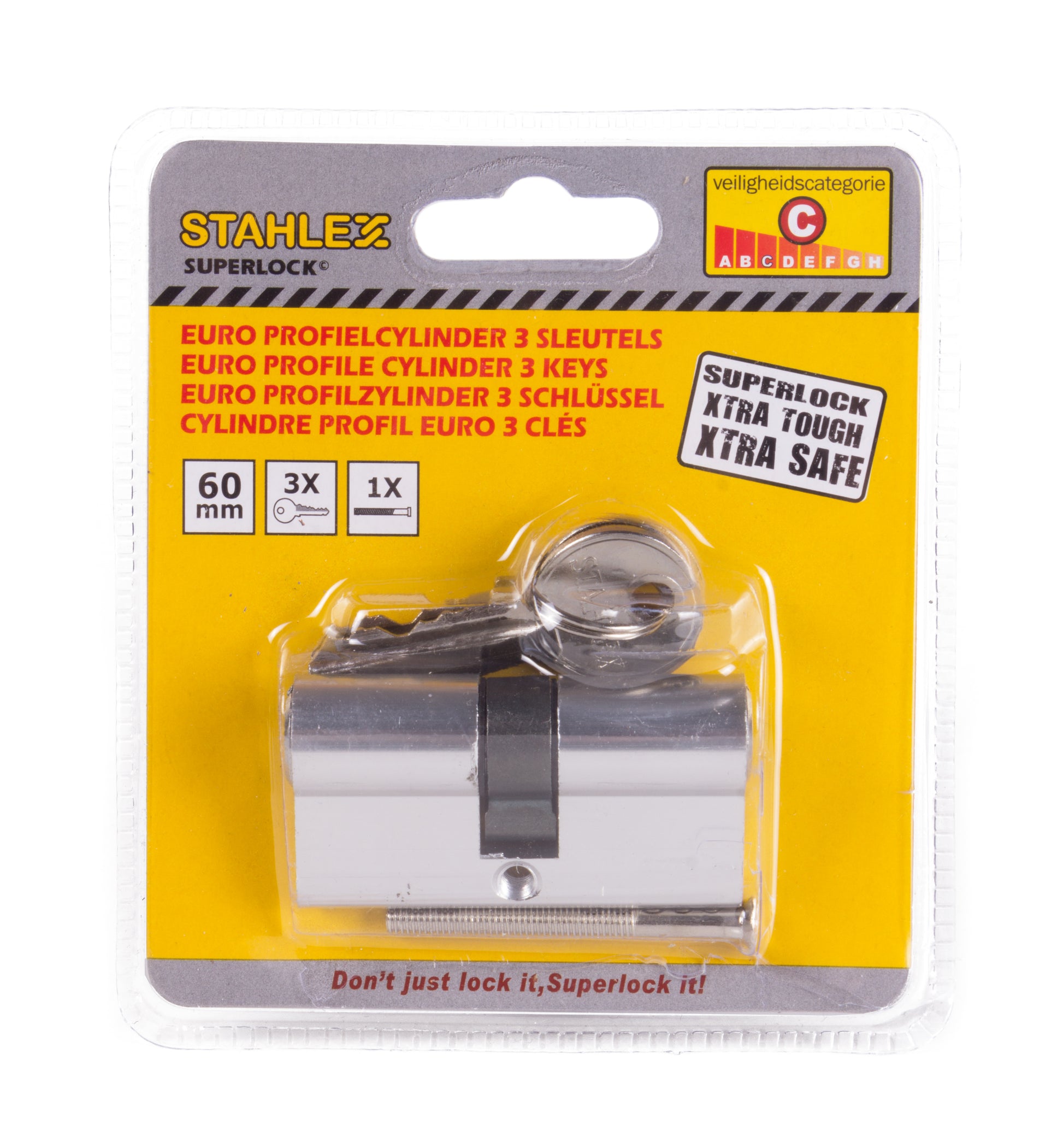 Dieses Doppelzylinderschloss mit einer Länge von 60 mm verfügt über einen standardisierten Euro-Profilzylinder, der dank präziser Stiftmechanik zuverlässig den Riegel betätigt und so deine Tür sicher öffnet und schließt.