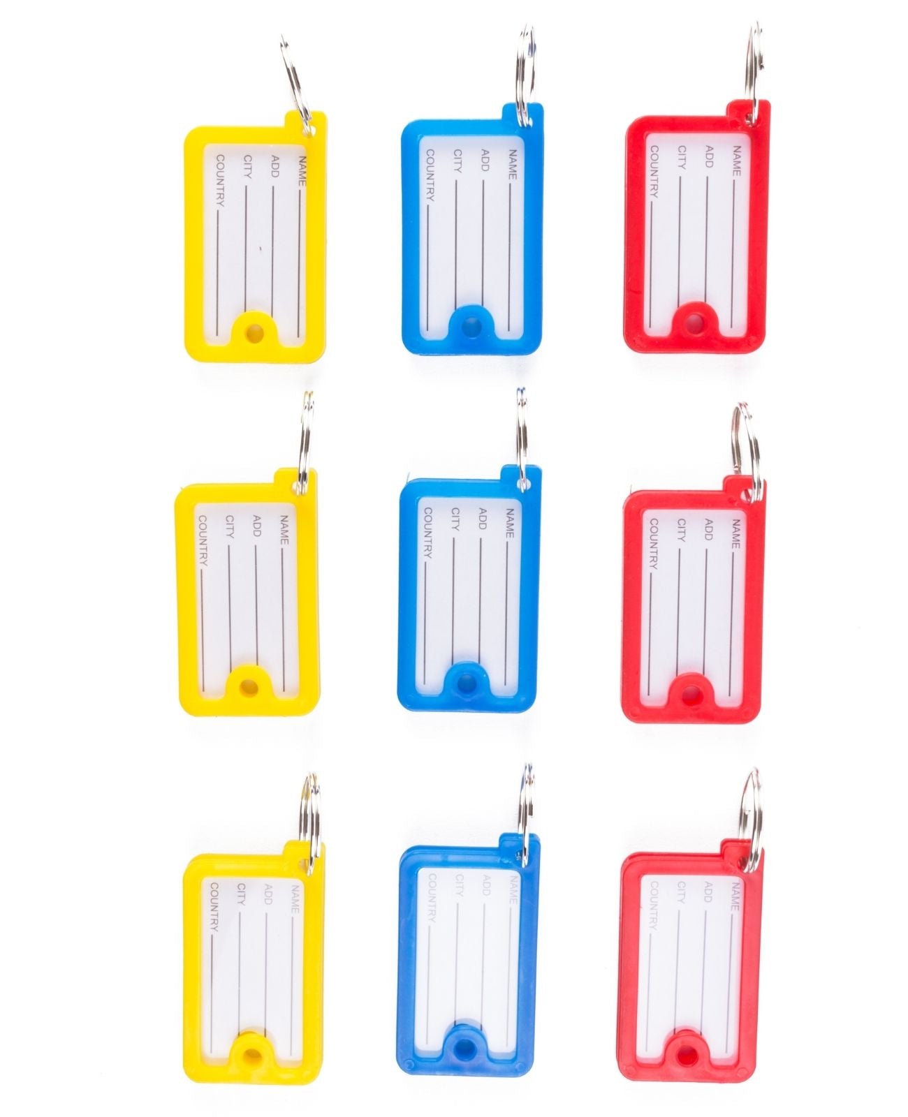 Dieses Set enthält insgesamt 9 Schlüsselanhänger in den Farben Rot, Blau und Gelb (je 3 Stück). Ideal zum Organisieren von Haus-, Büro-, Koffer- oder Reiseschlüsseln.
