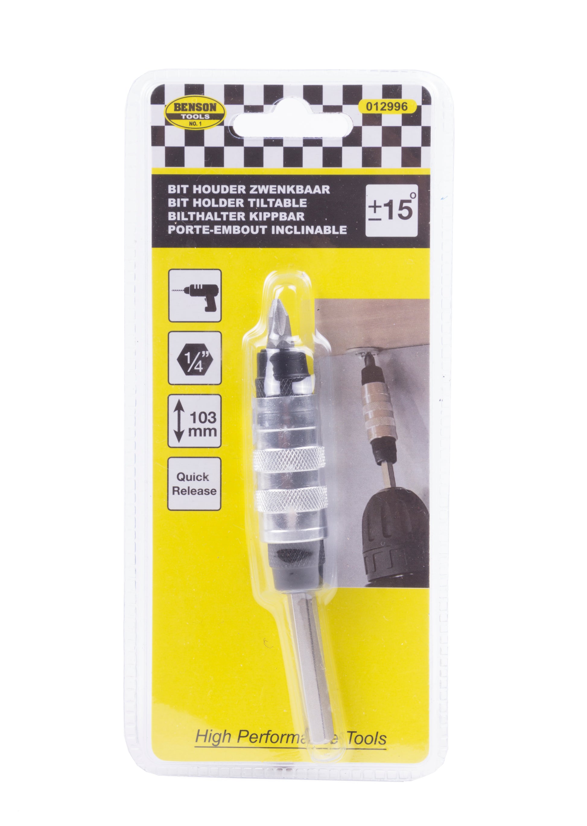 Dieser Bithalter mit Schnellverschluss ist die perfekte Lösung für Arbeiten an eng zugänglichen Stellen. Dank des 15° Kippwinkels erreichst du Schrauben auch in verwinkelten Bereichen problemlos.