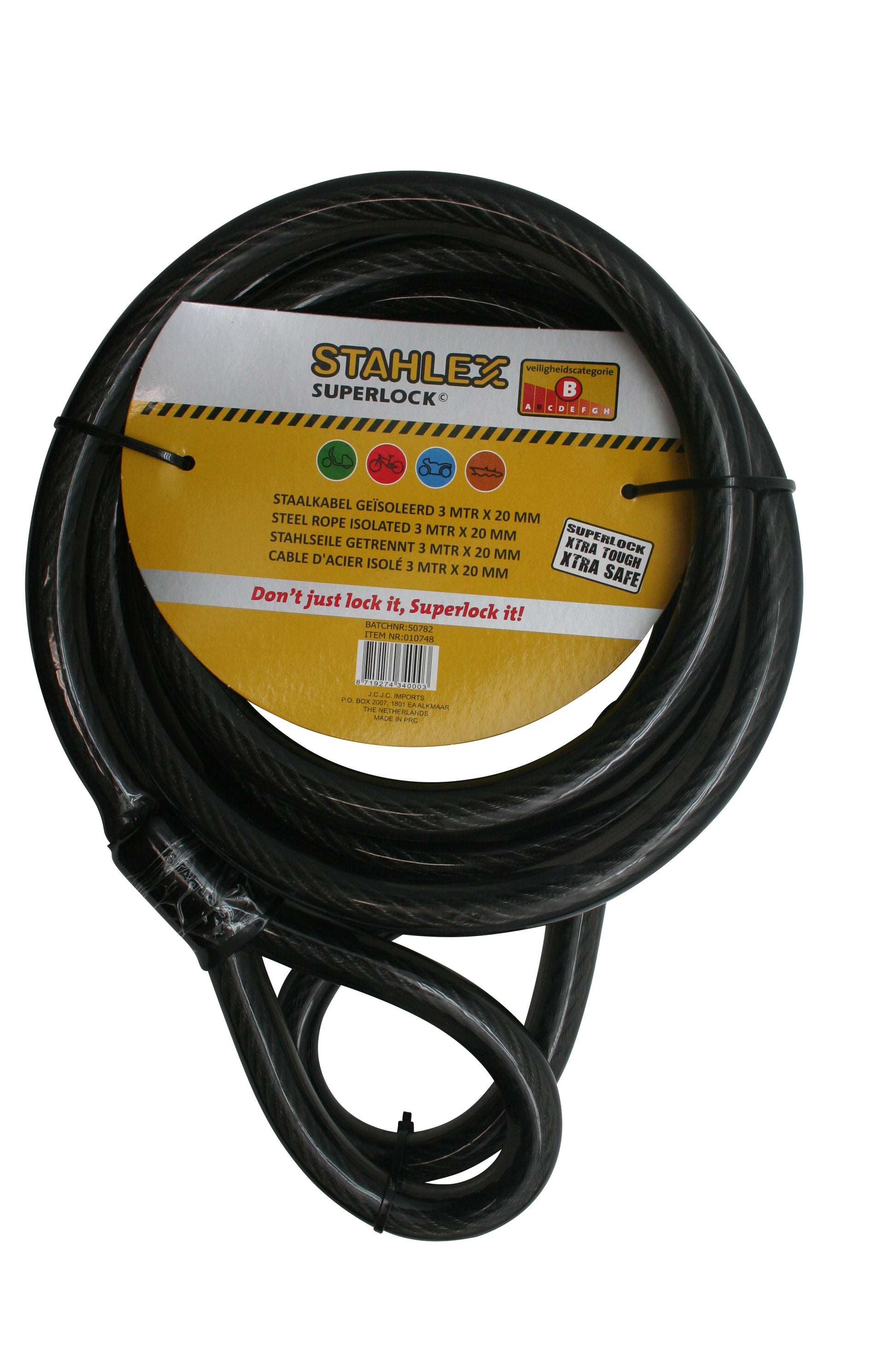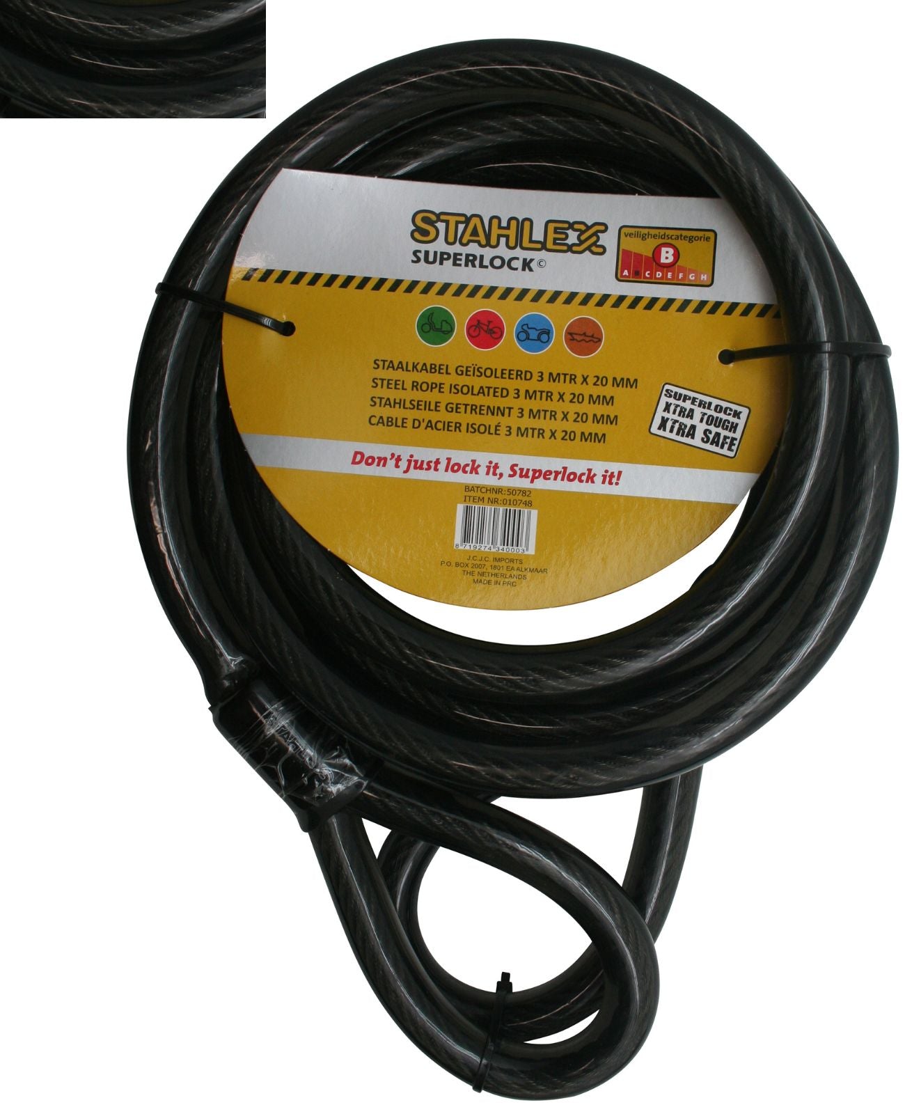Sichern Sie Ihr Eigentum effektiv mit diesem extra starken 3 Meter langen Stahlseil. Mit einem Durchmesser von 20 mm und zwei stabilen Schlaufen ist dieses Sicherheitskabel ideal zum Schutz von Fahrrädern, Motorrädern, Booten, Gartengeräten und vielem mehr – innen wie außen.