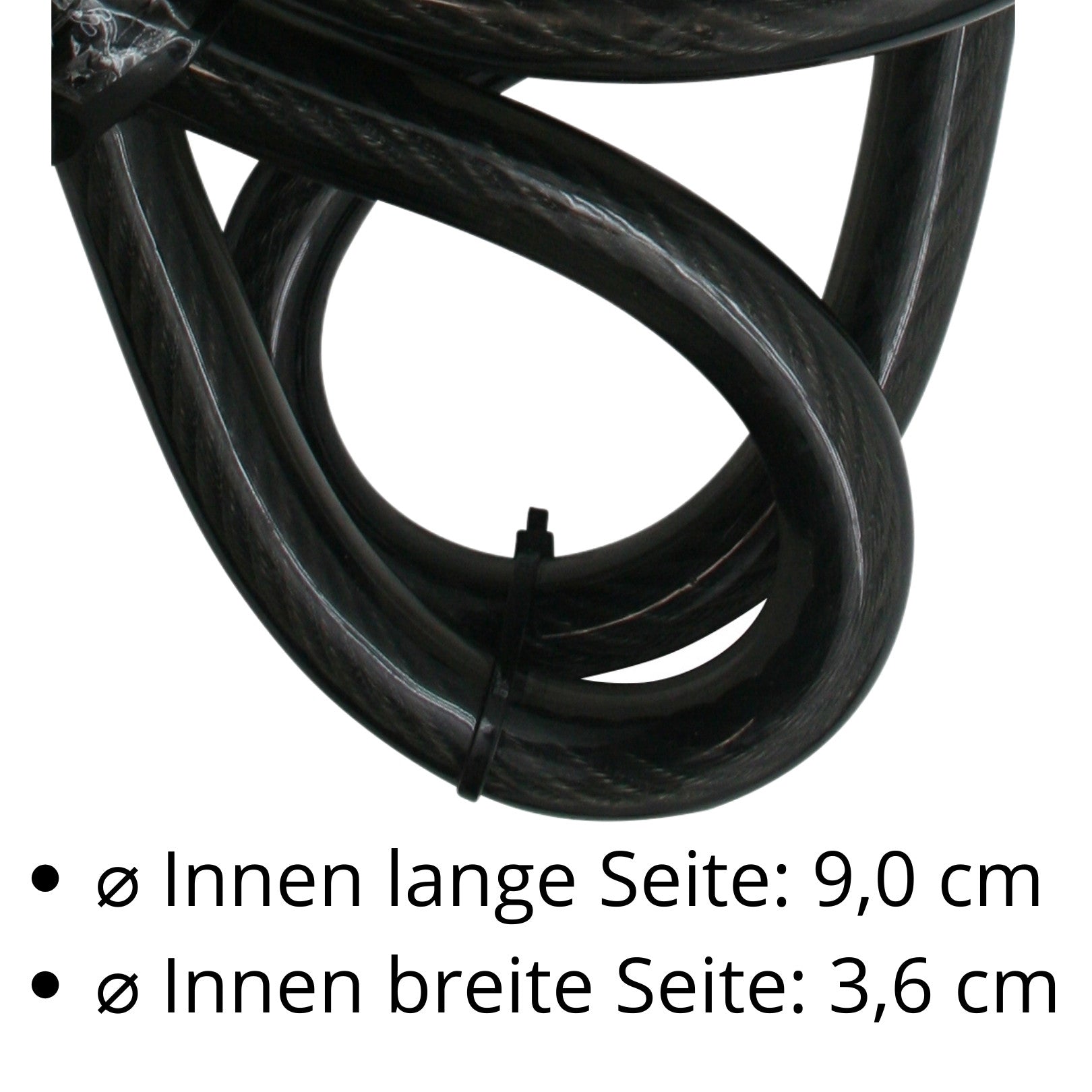 Mit zwei stabilen Schlaufenösen (Innendurchmesser: lange Seite 9 cm, breite Seite 3,6 cm) lässt sich das Stahlseil einfach mit gängigen Vorhängeschlössern oder Bügelschlössern kombinieren. Perfekt für den flexiblen Diebstahlschutz von Fahrrädern, Geschäften, Booten, Gartenmöbeln und Sportgeräten.