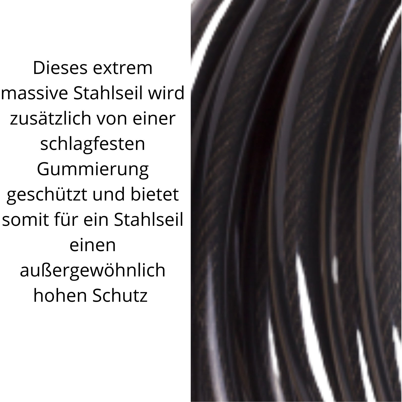 Sichere, was dir wichtig ist – mit diesem hochfesten 5 Meter langen Sicherheitskabel aus gehärtetem Stahl. Ob Fahrrad, Motorrad, Boot oder Gartengeräte: Das extrem robuste Stahlseil mit Schlaufen und zusätzlicher Gummierung schützt zuverlässig vor Diebstahl – zu Hause, unterwegs oder im gewerblichen Einsatz.