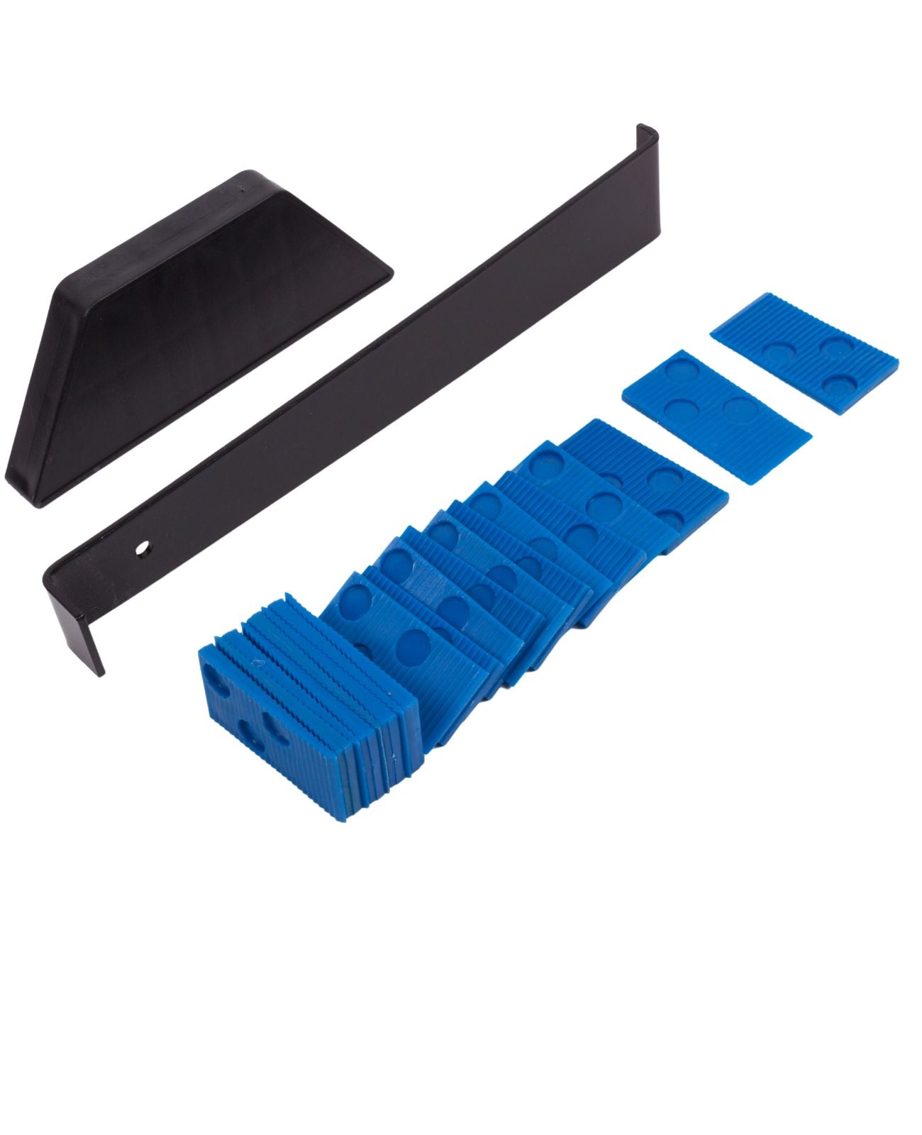 Produktbeschreibung: Verlegeset Verlegehilfe für Laminat und Parkett Bodenlag Abstandskeile Zugeisen
