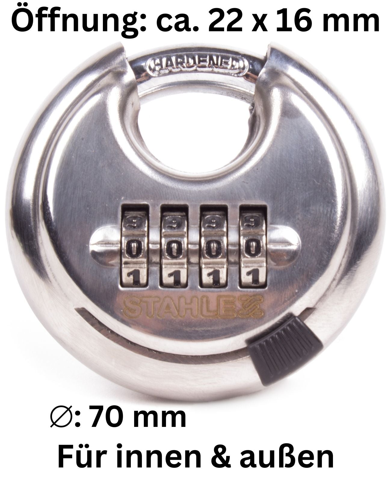 Das Schloss ist dank seines runden Bügels (ca. 9 mm stark) und der hochwertigen Materialien besonders widerstandsfähig. Ideal für den Einsatz drinnen und draußen, trotzt es Witterungseinflüssen zuverlässig.