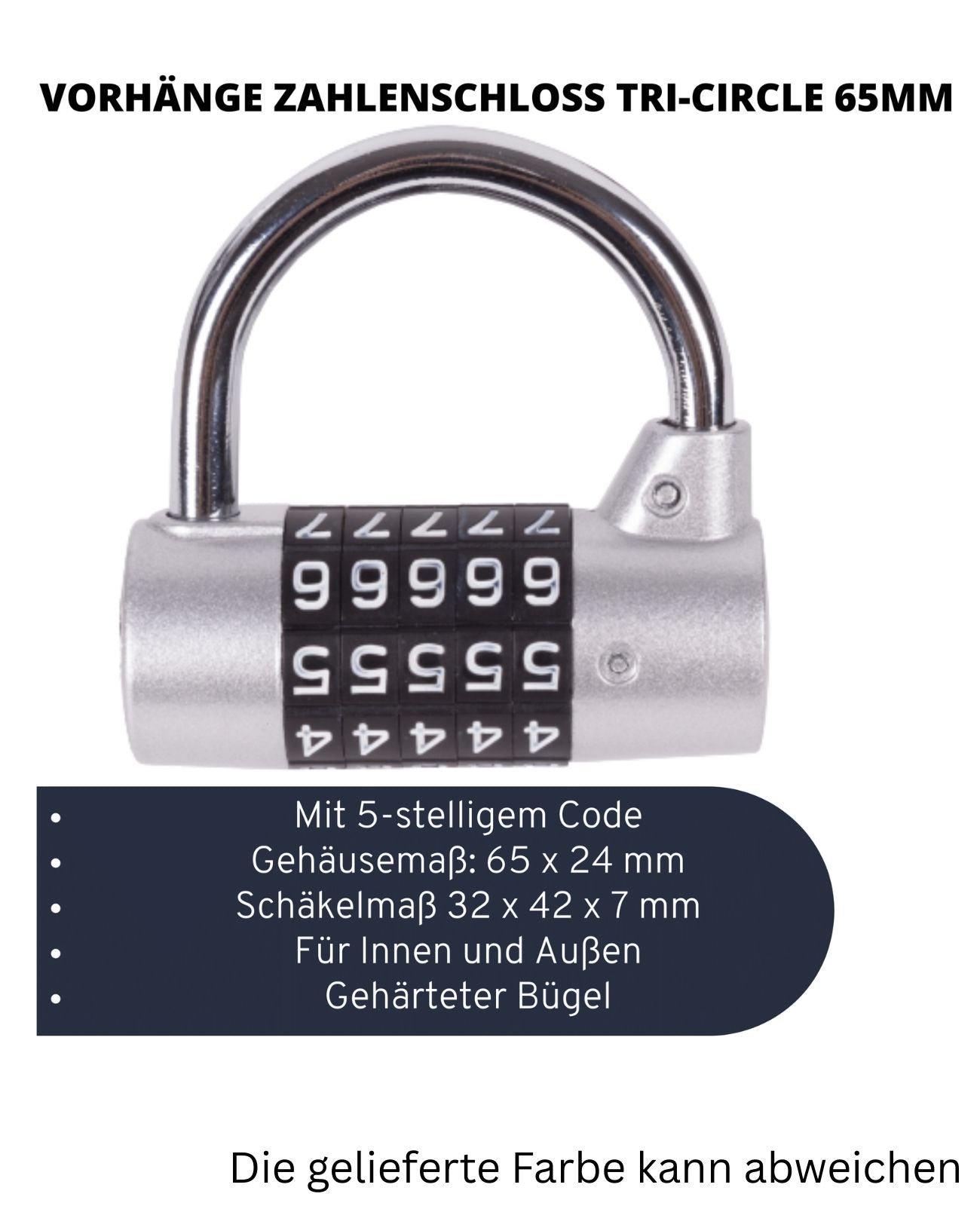 Das Tri-Circle Zahlen-Kombinationsschloss aus hochwertiger Zinklegierung bietet dir maximale Sicherheit ohne Schlüssel. Mit einem 5-stelligen Code schützt es zuverlässig Tore, Garagen, Container sowie Fahrräder und Motorräder.