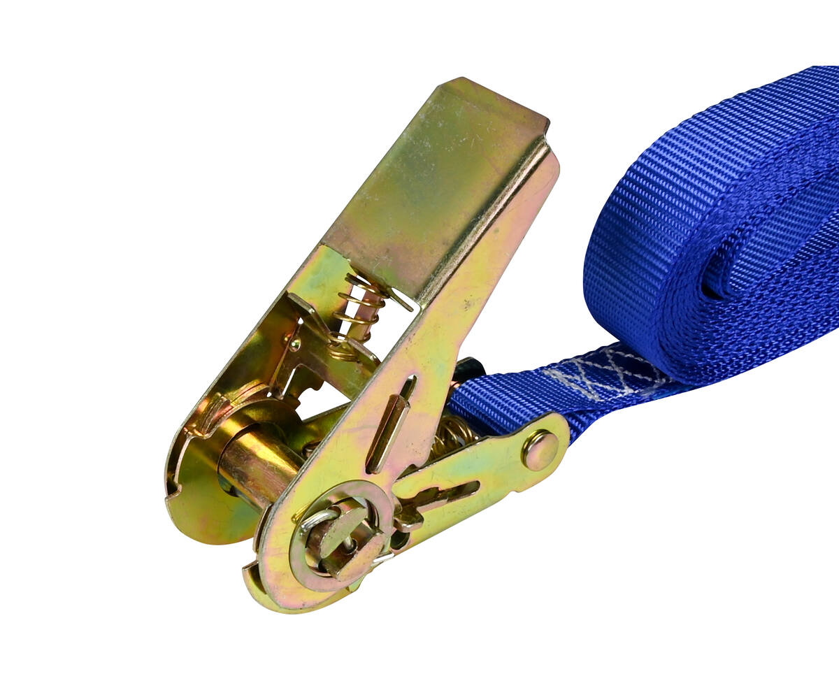 Durch die kompakte Breite von 25 mm und die hohe Belastbarkeit ist der Spanngurt für Anhänger, Transporter, Fahrräder, Möbel, Camping, Werkstatt und Hobby gleichermaßen geeignet.